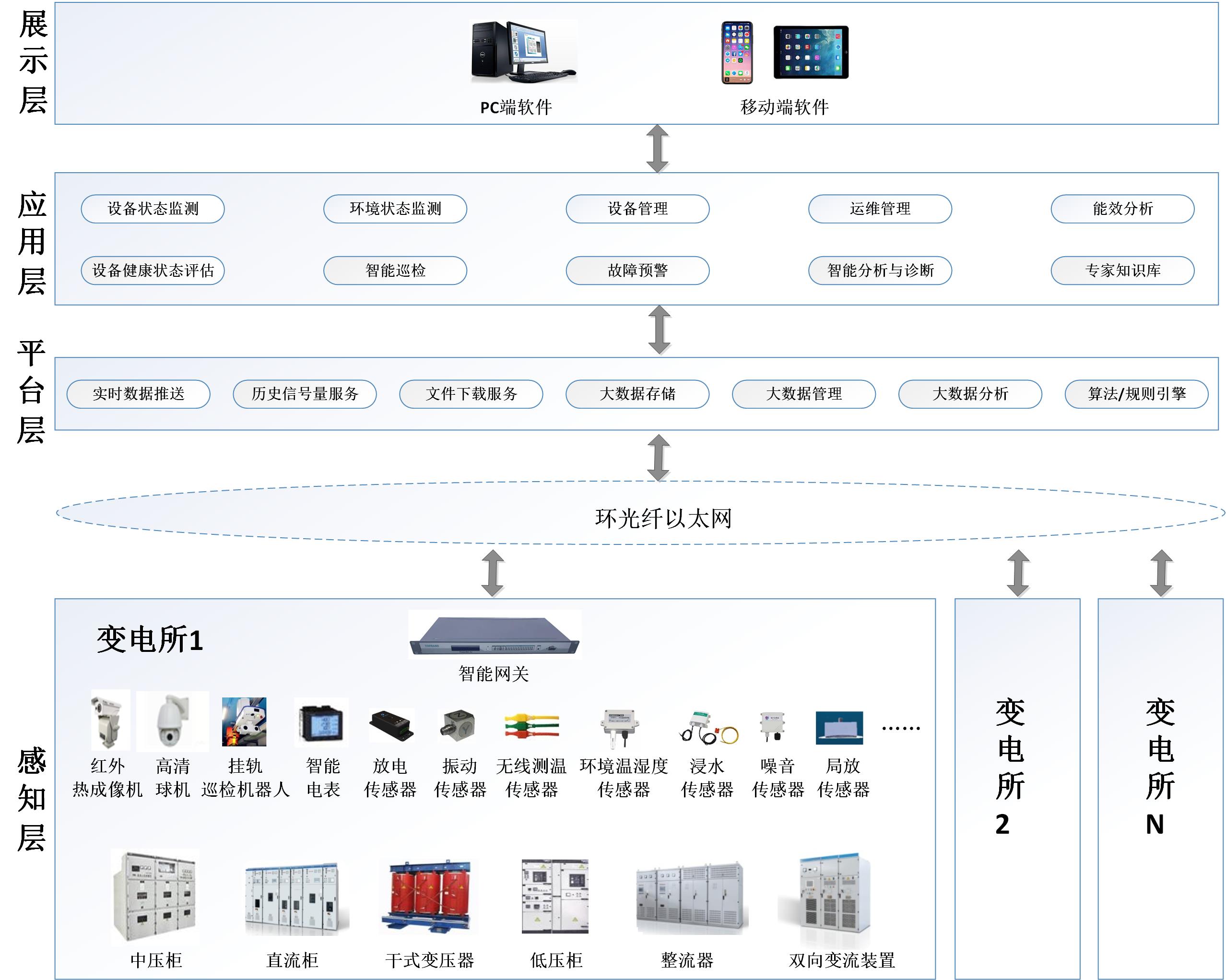 主要应用于轨道交通牵引供电系统中,实现供配电设备智能巡检、在线监测、设备健康管理、车站能源管理。